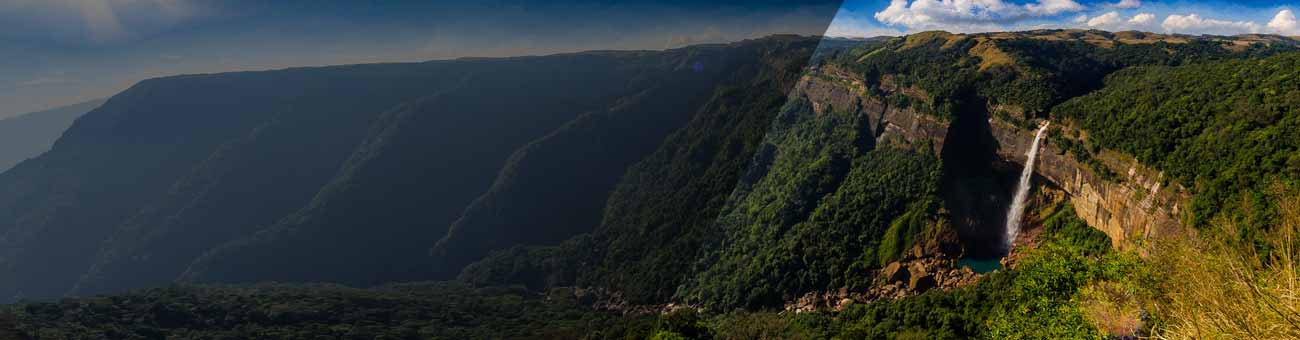 Nohkalikai Falls remain a must visit place in Cherrapunji. This is the tallest plunge waterfall in India cascading from a height of 1115 feet. Watching this waterfall descend from an unbelievable height is a fascinating experience. From here you can spot the plains of Bangladesh.